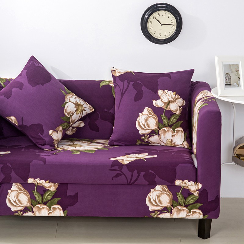 Bayar Di Tempat]Sarung Pelindung Sofa dengan Bahan Poliester Elastis dan Motif Bunga Warna Ungu | Shopee Indonesia
