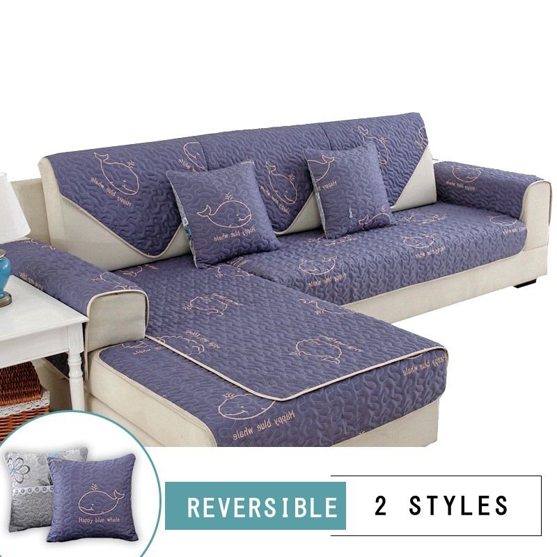 Sarung Pelindung Sofa dengan Bahan Kain dan Gambar Motif Warna Ungu / Abu-Abu | Shopee Indonesia