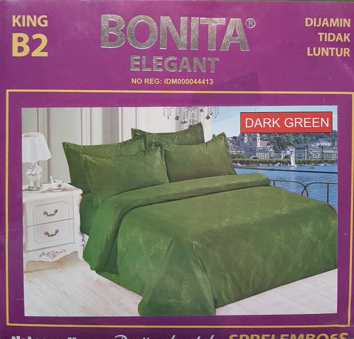 Jual (BISA COD) SPREI BONITA 3D ORIGINAL EMBOS POLOS DARK GREEN UKURAN 180 x 200 KING KASUR NO.1 SEPRAI SEPRAY SEPREY FLASHPOINT.ID