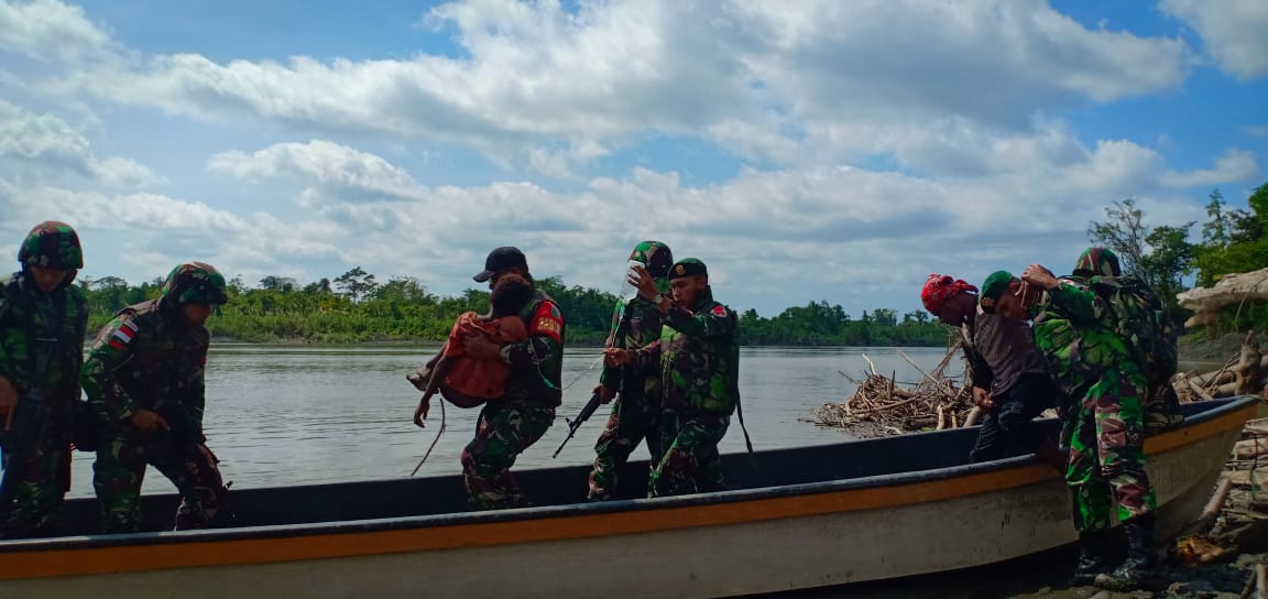 Tembus Sungai Mamberamo sejauh 120 Km, Satgas Yonif 755/Yalet Evakuasi Anak Penderita Malaria - Penanegeri.com