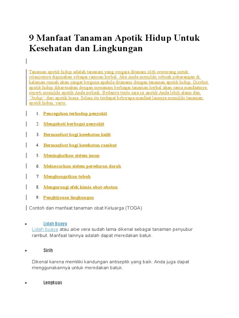 DOC) Apotek hidup dan manfaatnya | cahyo hidayah - Academia.edu