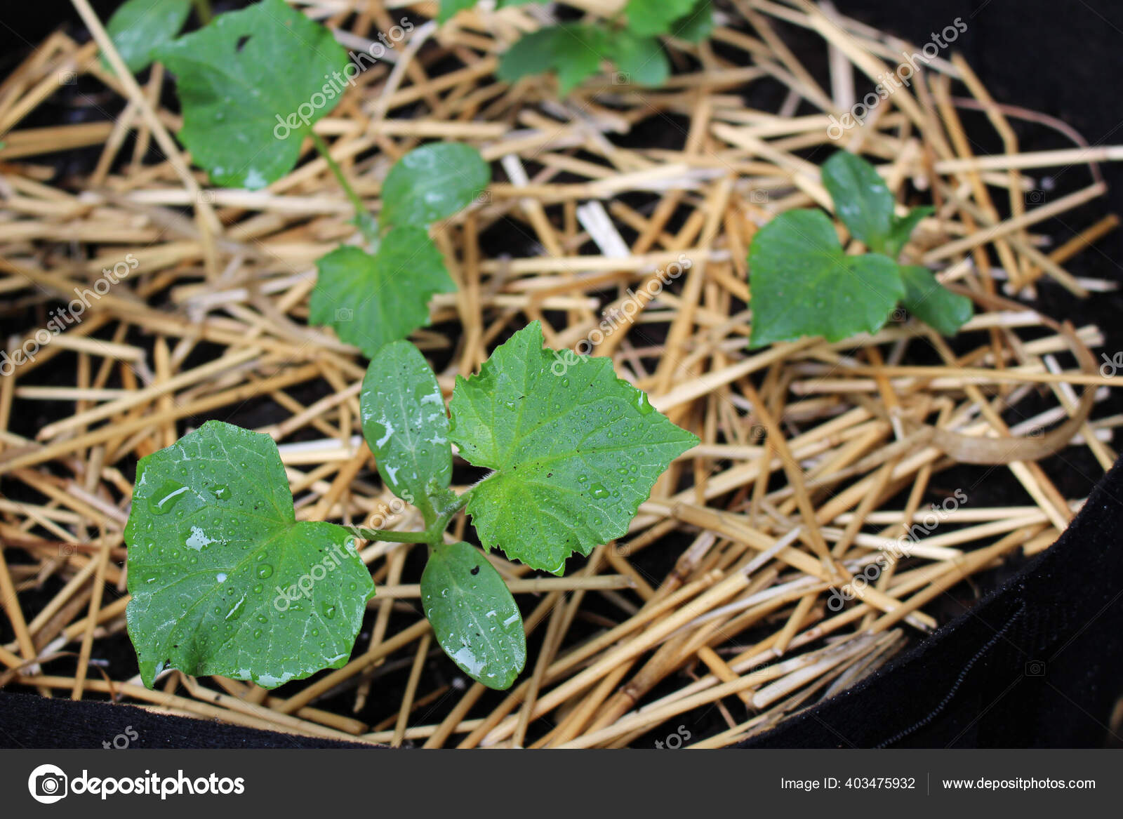 Tanaman Mentimun Kecil Tumbuh Dalam Wadah Dengan Jerami Atas Tanah — Stok Foto © gvictoria #403475932