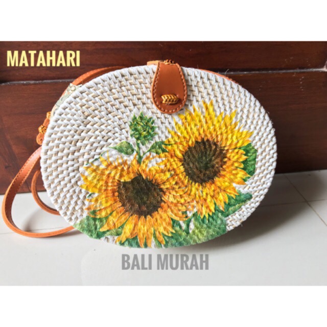 Tas Rotan Bali Lukis Decoupage Bunga Matahari Sunflower TRL019 Diameter 20cm [Bisa COD] | Shopee Indonesia