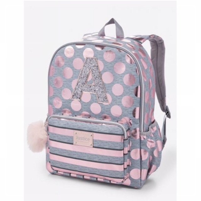Tas Justice Original Rose Gold Foil Initial Backpack Polkadot Ransel Sekolah Anak | Shopee Indonesia