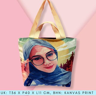Tote Bag Tali Sumbu Wanita Printing Kanvas Murah Simple Karakter Hijab Gambar Motif Muslimah Unik | Shopee Indonesia