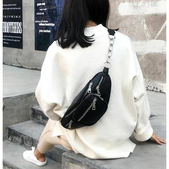 Waist Bag / Tas Selempang / Tas Pinggang Wanita Rantai Semi Kulit - Hitam | Lazada Indonesia