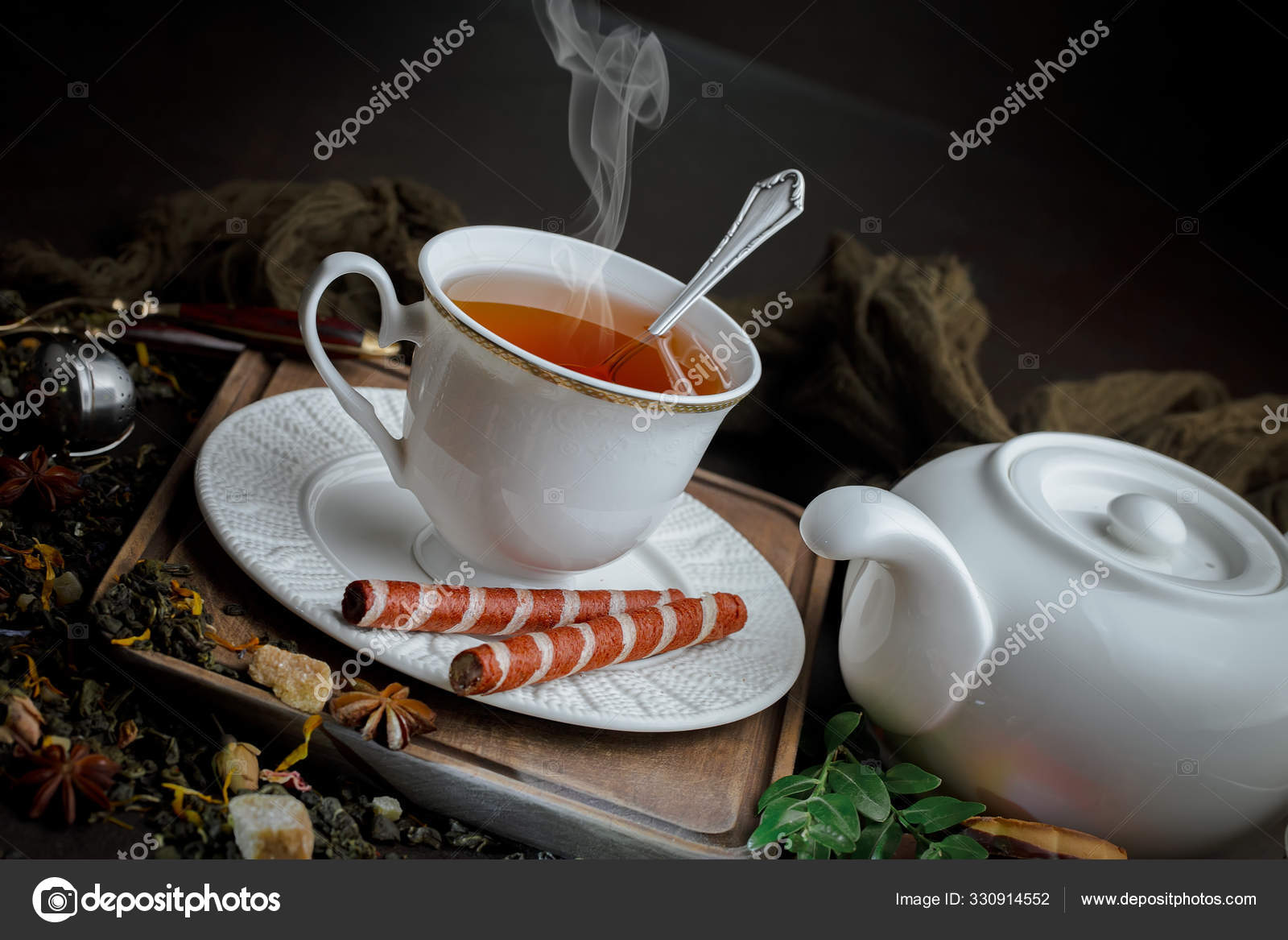 Teh Panas Dalam Cangkir Dengan Latar Belakang Lama Stok Foto © VIZAFOTO #330918254
