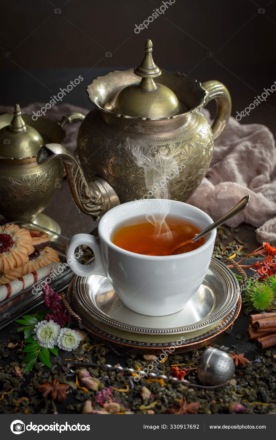 Teh Panas Dalam Cangkir Dengan Latar Belakang Lama Stok Foto © VIZAFOTO #330917692