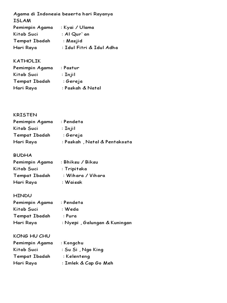 DOC) Macam Macam 6 Agama di Indonesia dan Tempat Ibadahnya | Ulett Mlingkel - Academia.edu