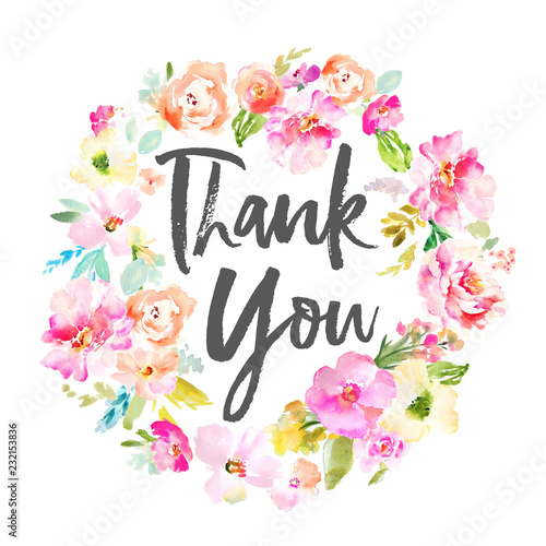 Watercolor Floral Background Thank You Note With Modern Hand Lettering - Buy this stock illustration and explore similar illustrations at Adobe Stock | Adobe Stock