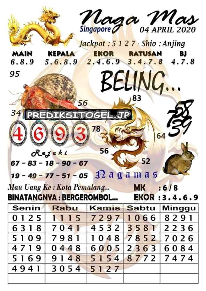 Prediksi Togel Singapura Sabtu 04 April 2020 - PrediksiTogel.JP