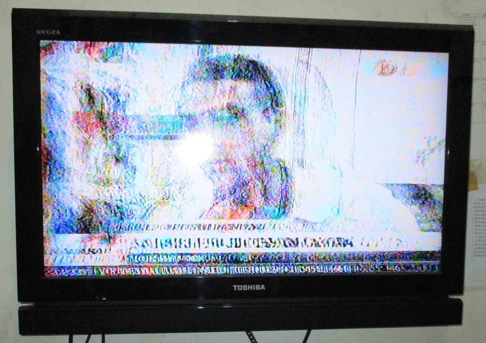 Televisi Toshiba LCD 32HV10 E3 kerusakan gambar Dobel Ungu Berbayang