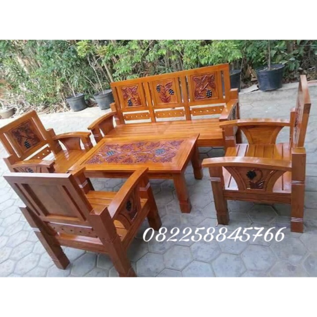Meja Kursi Tamu Ukir Minimalis Bahan Kayu Jati Motif Ukiran Minimalis | Shopee Indonesia