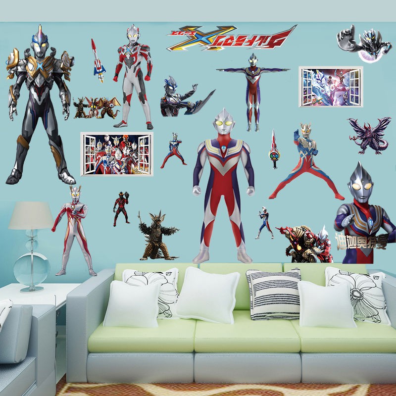 Stiker Dinding dengan Bahan Kertas dan Gambar Kartun Ultraman 3 D untuk Kamar Tidur | Shopee Indonesia