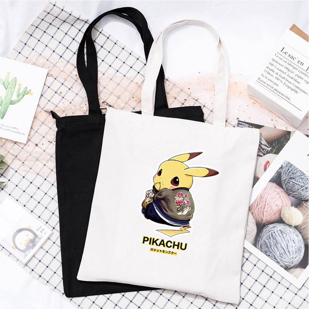 Tas Tote Bag Motif Gambar Kartun Pikachu Bahan Kanvas Untuk Pelajar Wanita | Shopee Indonesia