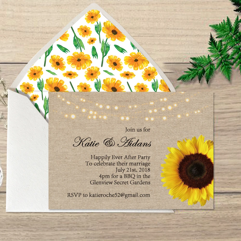 Undangan Pernikahan bunga matahari, Floral Undangan Pernikahan Kartu dengan Berjajar Amplop Set dari 50|card with envelope|sunflower cardscard card - AliExpress