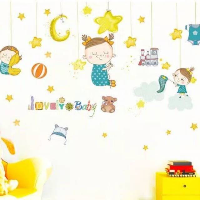 Stiker Dinding Wallpaper 60x90cm Motif Karakter gantungan Bulan Bintang Bayi Dekorasi kamar anak | Shopee Indonesia