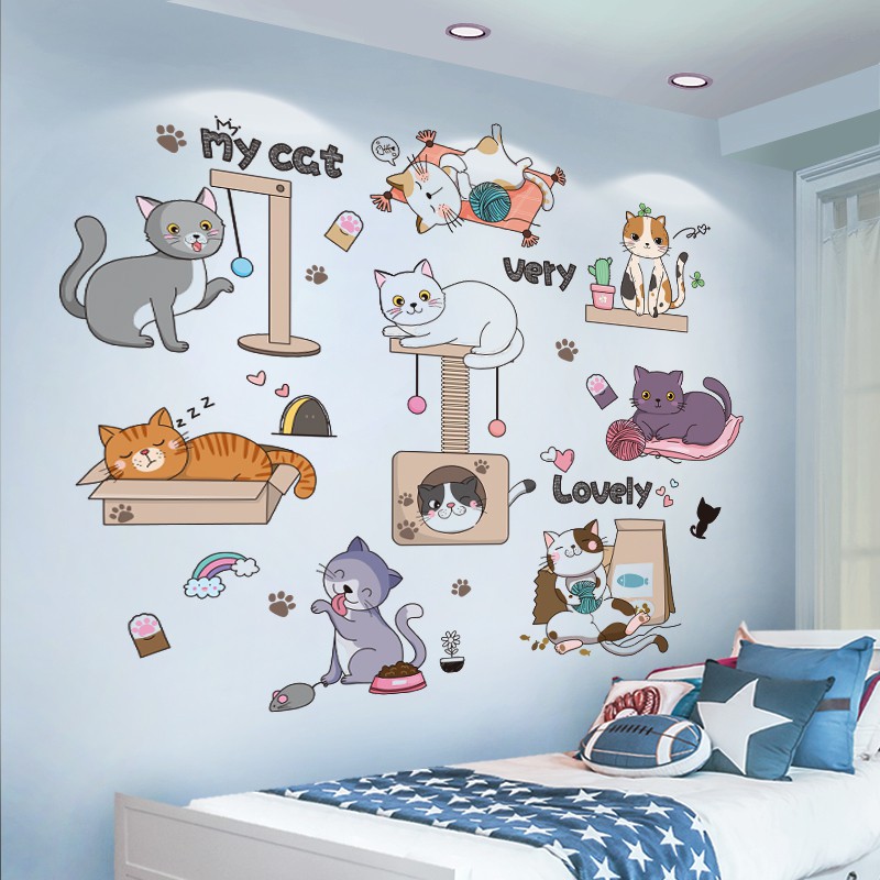 Kreatif lucu kucing stiker dinding, Perekat diri wallpaper, Kamar anak-anak, Bayi bayi tata letak ruangan stiker dekorasi | Shopee Indonesia