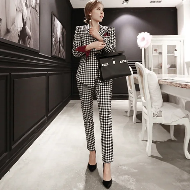 2019 Musim Gugur Korea Celana Cocok untuk Wanita Kantoran Wanita Dua Sepotong Set Plaid Tidak Teratur Blazer Coat + Bisnis Panjang Celana set|pants set|piece setbusiness set - AliExpress