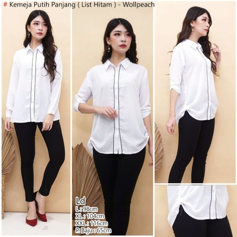 Kemeja Kerja Wanita Kantoran List Hitam || ZEESHOP | Shopee Indonesia