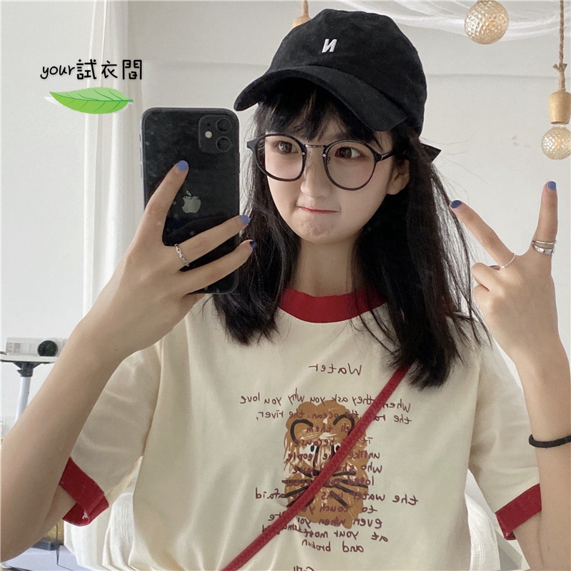 Tiger Gambar Wanita T shirt Katun Harajuku Musim Panas Perempuan Tee Top untuk Wanita Gadis Lucu Leher Bulat T shirt Punk Rock T kemeja|T-shirt| - AliExpress