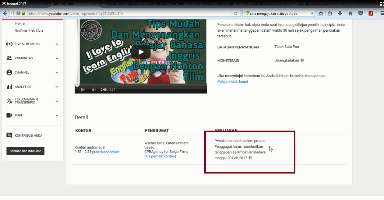 Cara Menghilangkan Klaim Hak Cipta Video Youtube - Mata Lhoong
