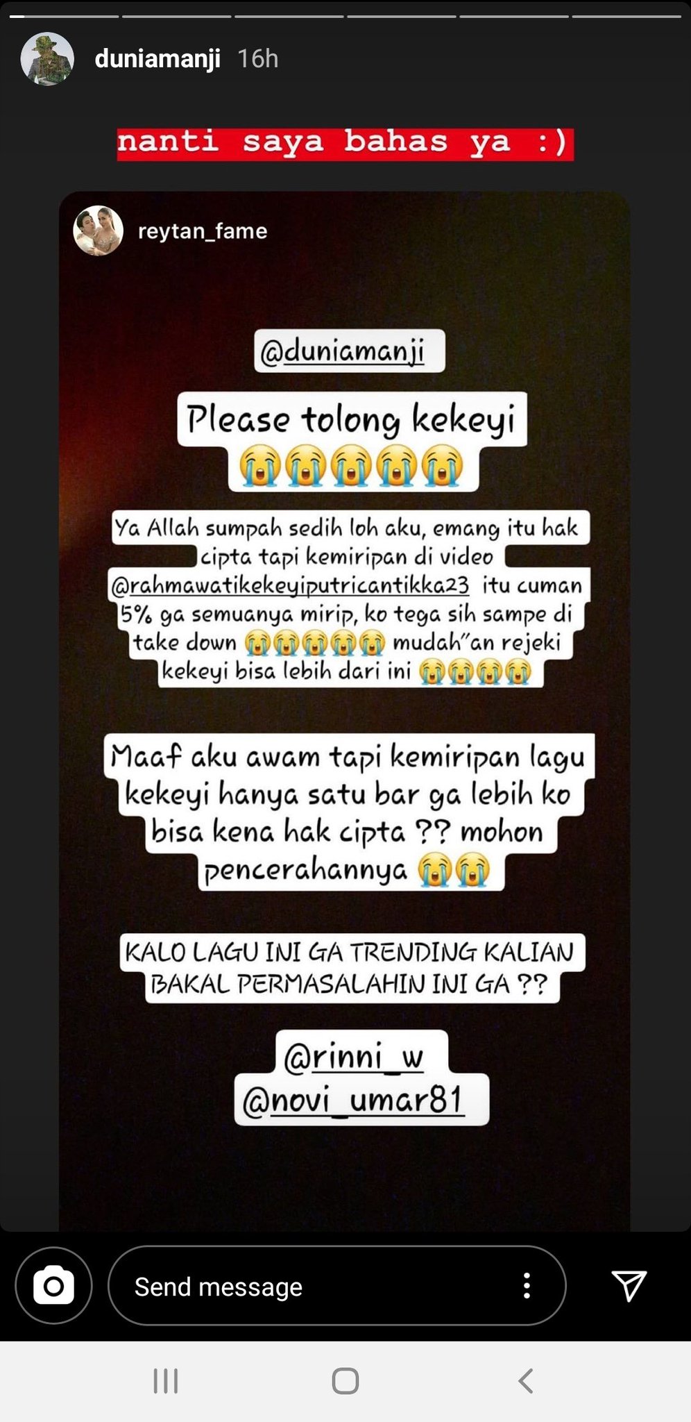 Victoria Yovita on Twitter: “Please tolong kekeyi Kena hak cipta lagunya rinni “aku bukan boneka” Jd lagu nya di take down Pdhl trending no 1 youtube Cr ig @duniamanji… https://t.co/Q6j3oO3hdv”