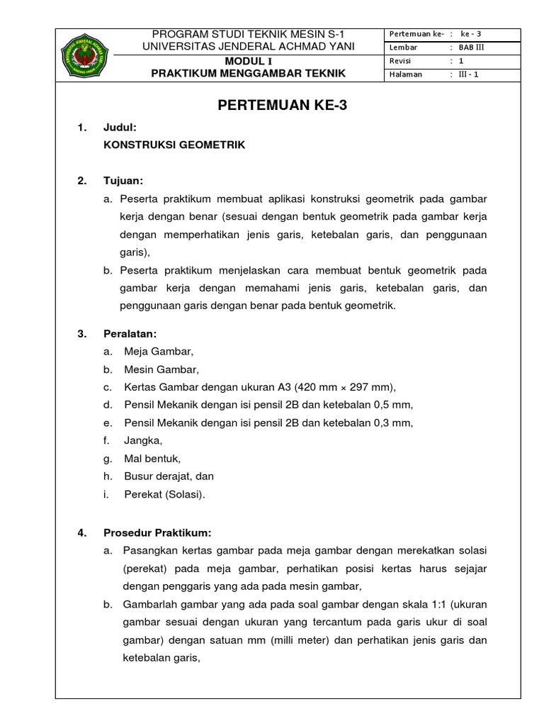 Pertemuan Ke-3: Modul I Praktikum Menggambar Teknik