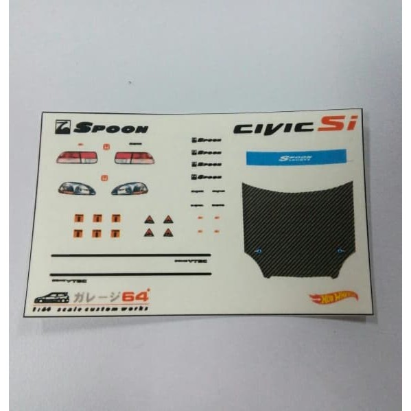 Decal set for Hotwheels Civic SI with carbon hood | Shopee Indonesia
