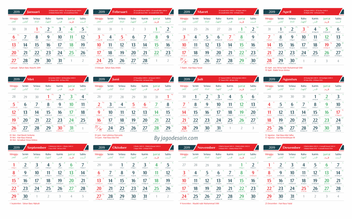 Template Kalender 2019 .cdr FULL – Masehi + Hijriyah – Jadibaru.com