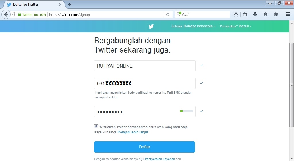 Daftar Twitter Menggunakan Nomor Ponsel - RUHIYAT ONLINE ®