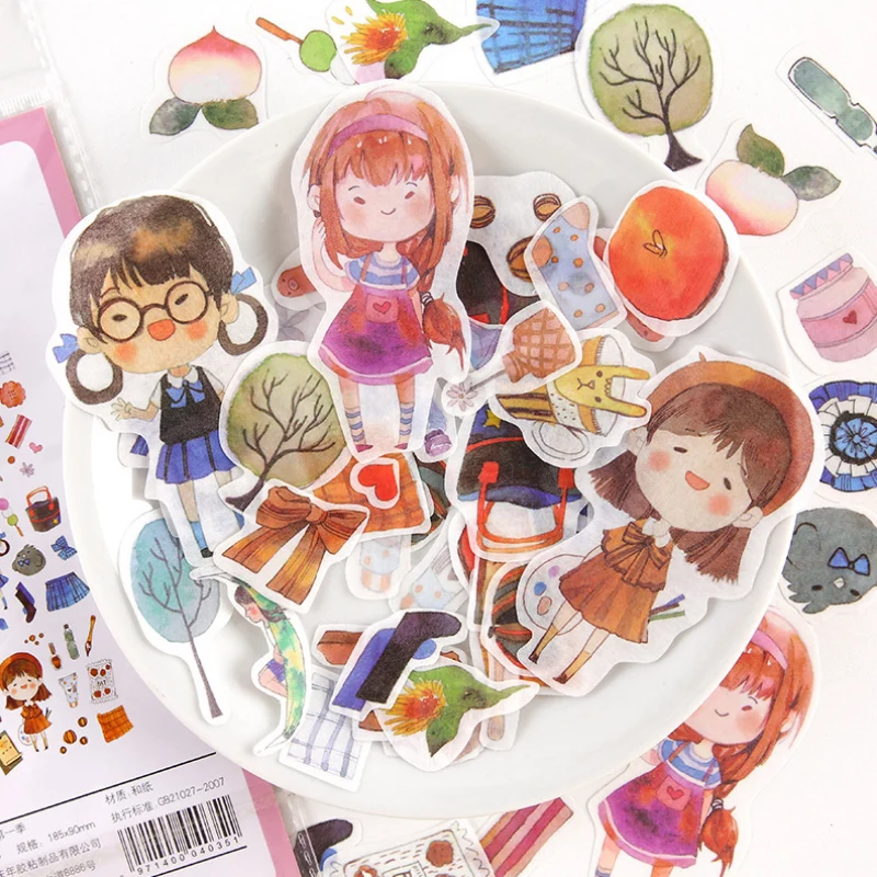 40 PCS/Banyak Kamar Gambar Kartun Gadis Bunga Kertas Stiker Dekorasi Stiker DIY Ablum Diary Scrapbooking Stiker Label Stationery|Berbagai Macam Stiker| - AliExpress