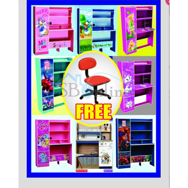 Meja Belajar Besar Motif Anak Anak Little Pony Big Hero 6 Donald Mickey Dll Bonus Kursi Putar | Shopee Indonesia