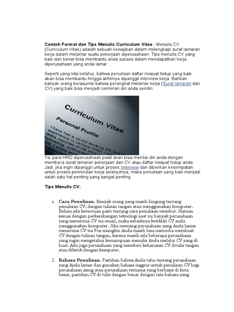 Contoh Format Dan Tips Menulis Curriculum Vitae