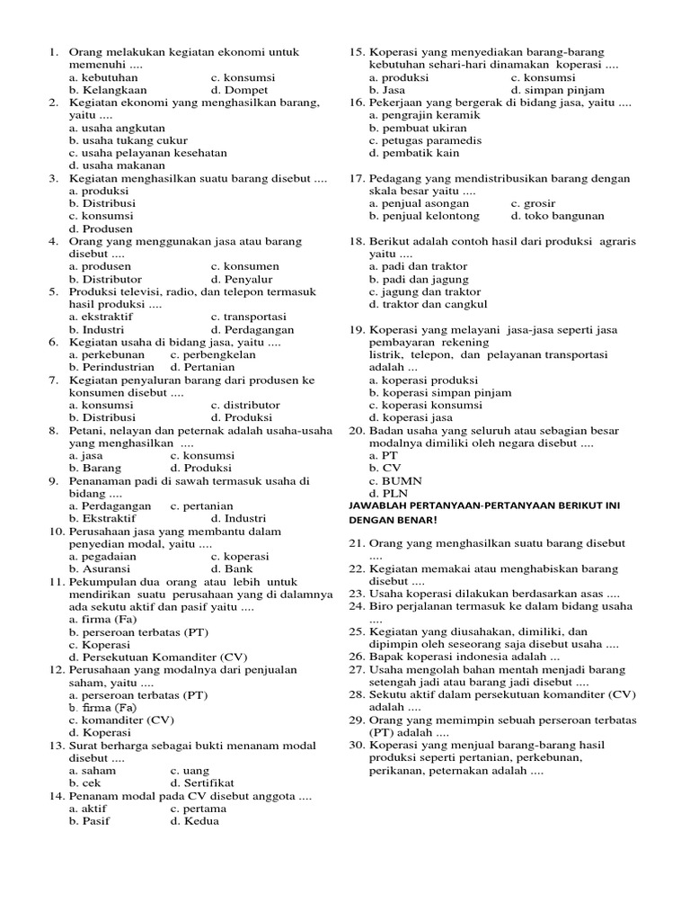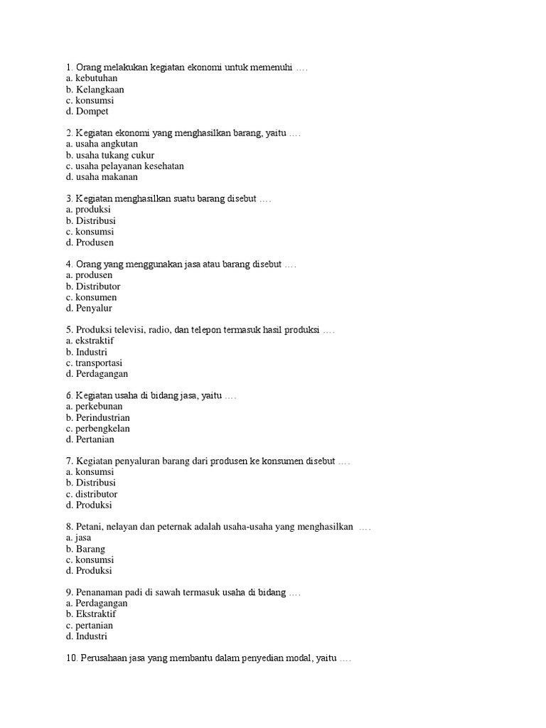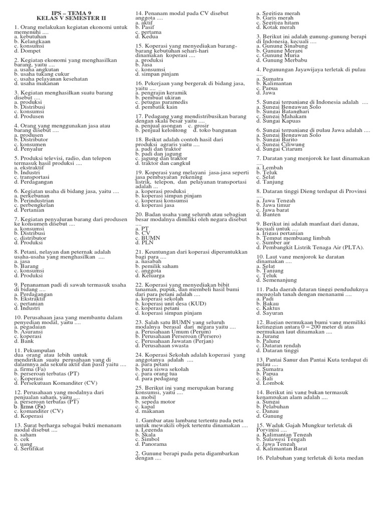 Soal IPS Kelas 5 SD Bab 5 Jenis Usaha Dan Kegiatan Ekonomi