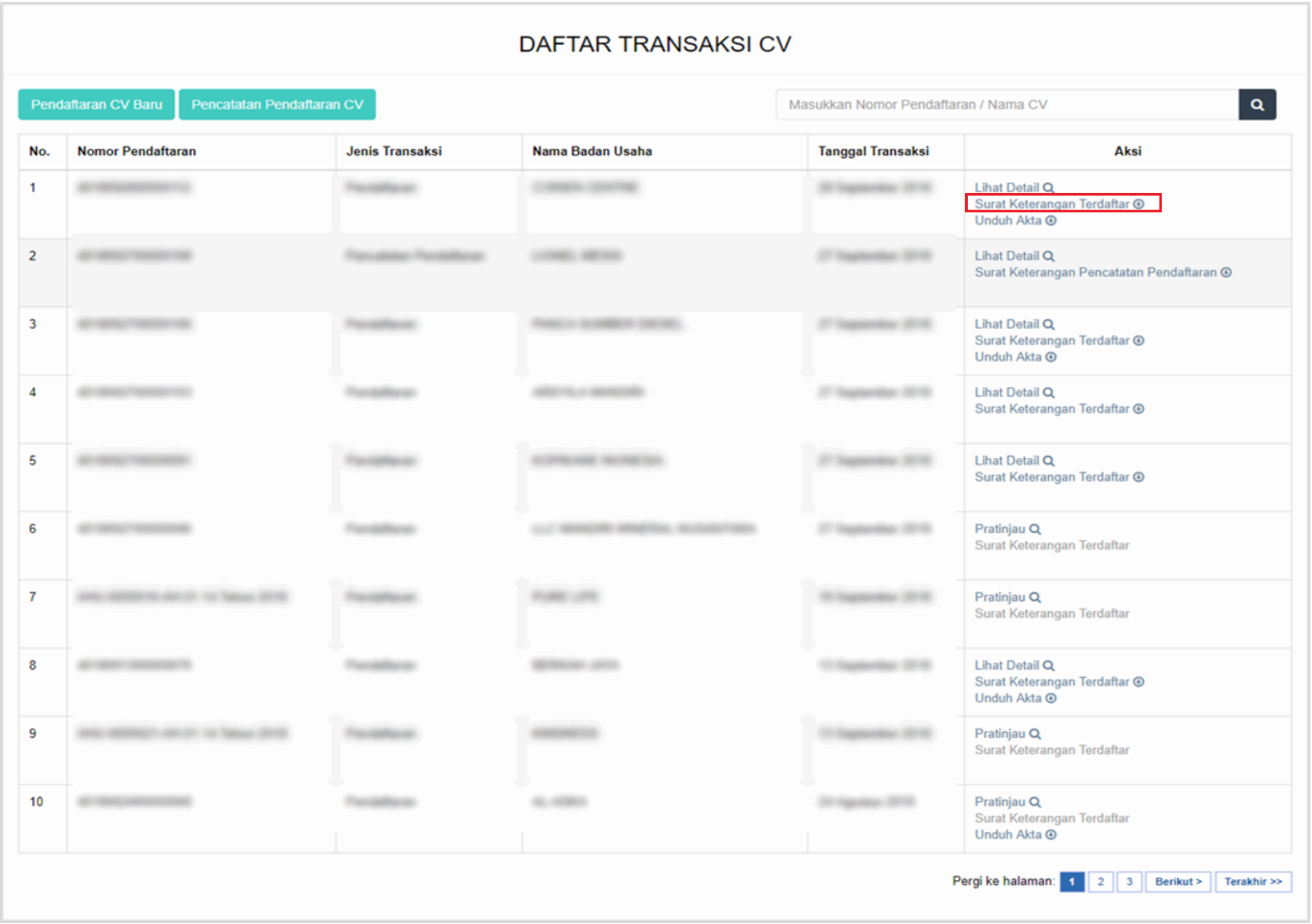 Pencatatan Pendaftaran Cv