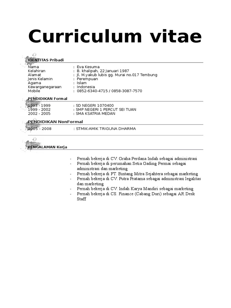 5+ Contoh CV Riwayat Hidup (yang Disukai HRD) - Notepam