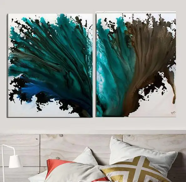 Desain 2 panel abstrak lukisan modern gambar dekoratif dalam besar turquoise lukisan minyak karya seni untuk dekorasi rumah|decorative pictures|painting modernabstract painting - AliExpress