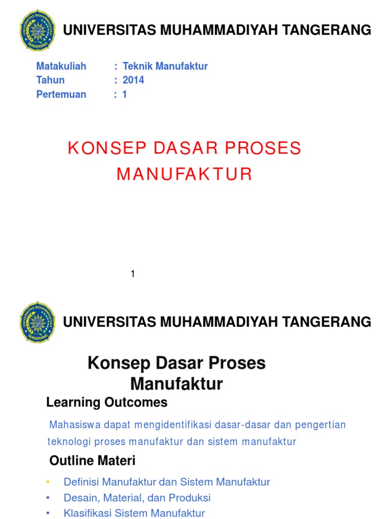 Konsep Dasar Proses Manufaktur: Universitas Muhammadiyah Tangerang