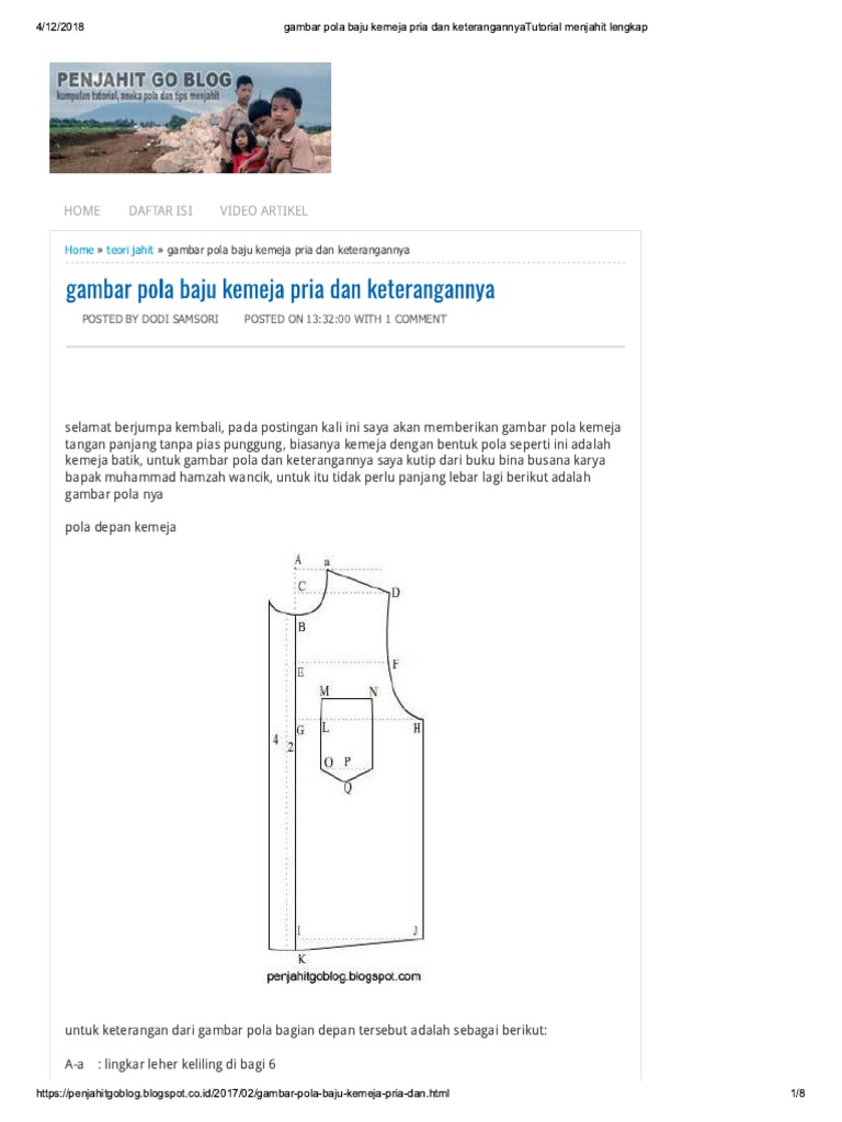 Gambar Pola Baju Kemeja Pria Dan KeterangannyaTutorial Menjahit Lengkap