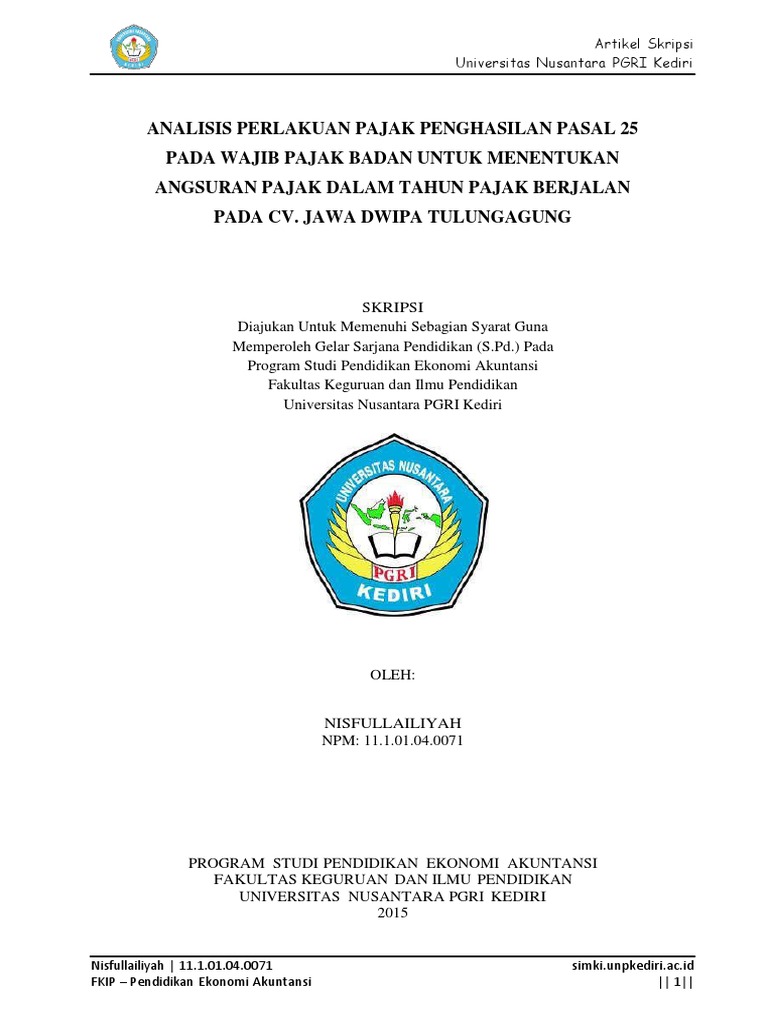 ANALISIS PAJAK PENGHASILAN PASAL 25 PADA CV INDAH UTAMA PDF Download Gratis