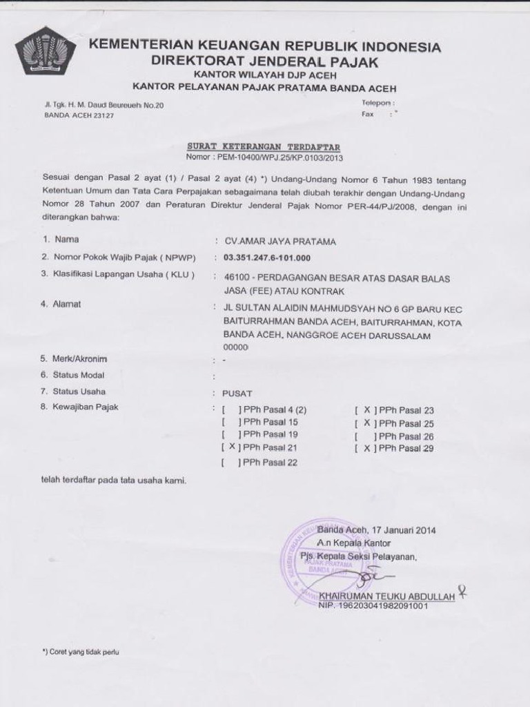 Skt Pajak Cv. Amar