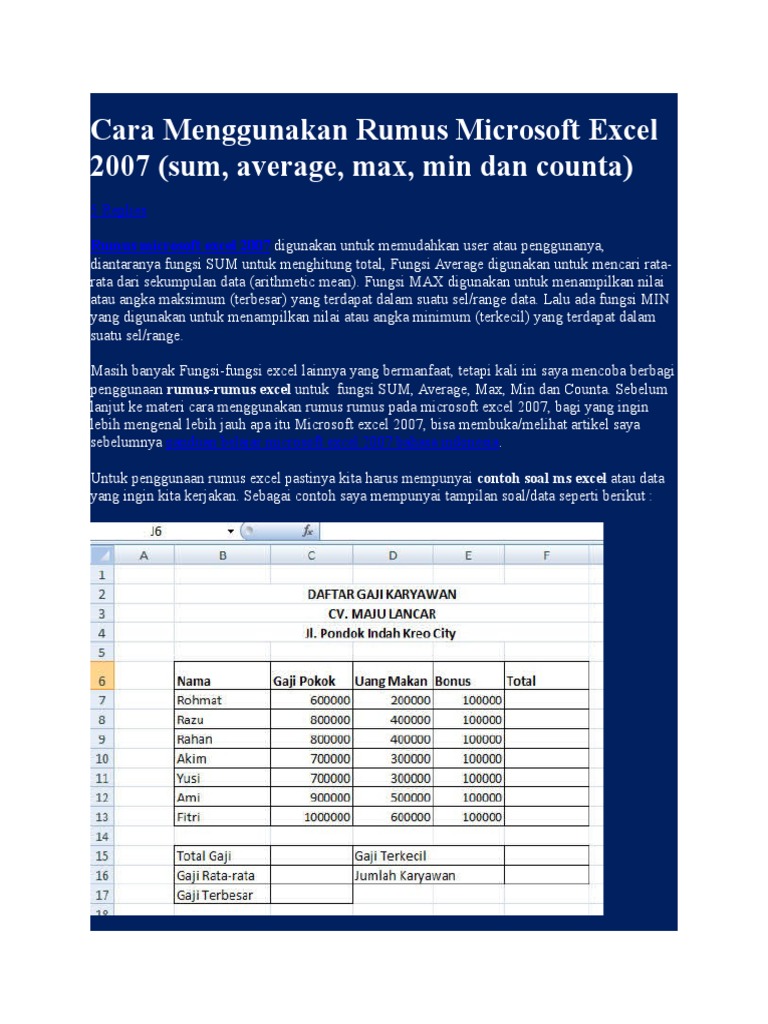 Cara Menggunakan Rumus Microsoft Excel 2007