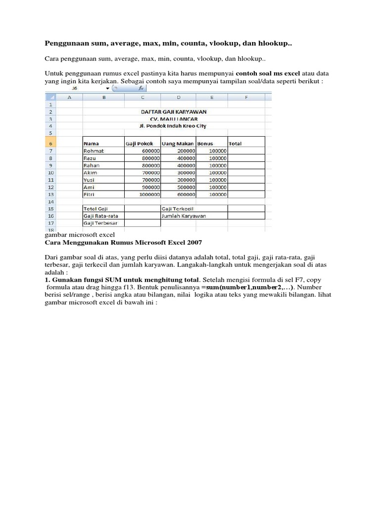Cara Menggunakan Rumus MS.Excel ( Sum, Average,Min, Max, dan Counta ) – rina252