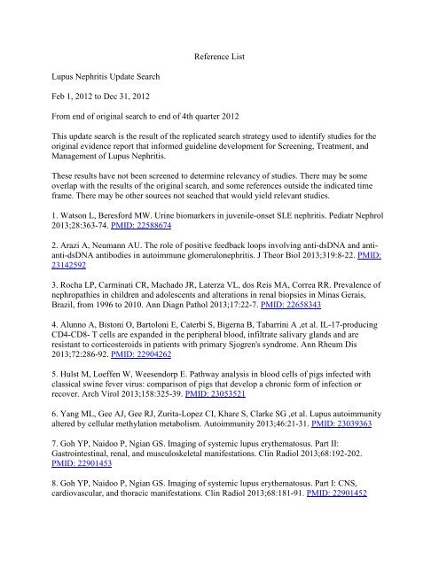 Reference List Lupus Nephritis Update Search Feb 1, 2012 to Dec …