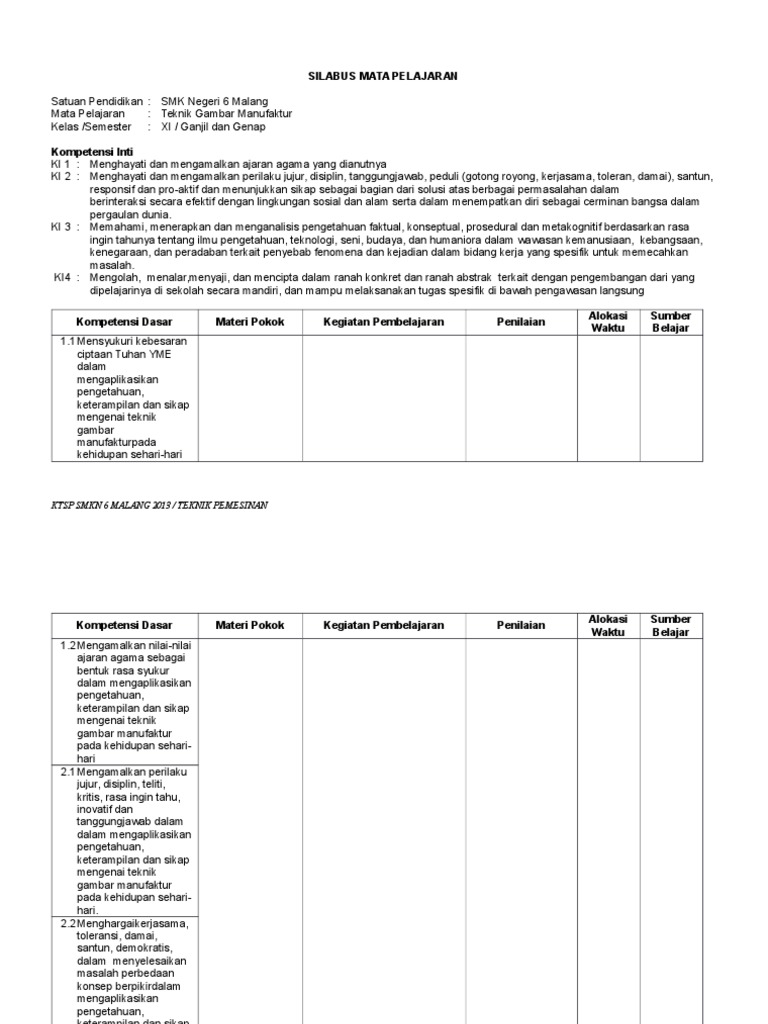 DOC) SILABUS MATA PELAJARAN Satuan Pendidikan : SMK Mata Pelajaran : Teknik Gambar Manufaktur Kelas /Semester : XI | Alpay Ozzolan - Academia.edu