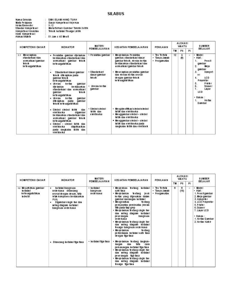 Silabus Gambar Teknik Listrik Kelas X SMK Kurikulum 2013 Revisi Terbaru - SMK INDONESIA 1