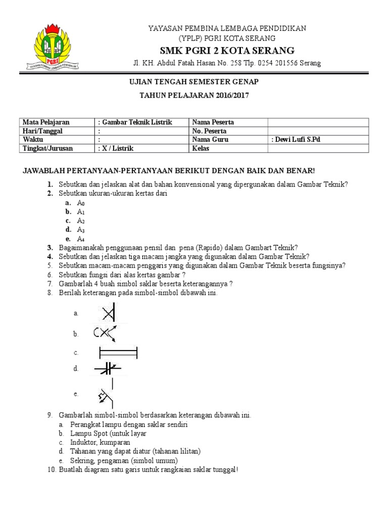 Soal Mid Semester Gambar Teknik Listrik - DINGIN AJA.COM