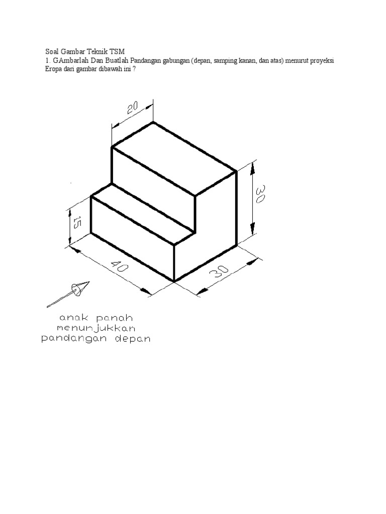 Soal Jawab - ? Β· Panduan Menggambar Teknik Mesin 1 32 Gambarkan pandangan atas, pandangan depan, dan pandangan samping kanan dari gambar isometri berikut dengan cara Eropa ! - [PDF Document]