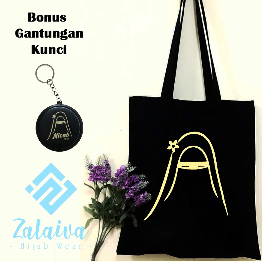 Tas Totebag Muslimah Semi Canvas Motif Niqab Cadar / Perekat dan Resleting | Shopee Indonesia